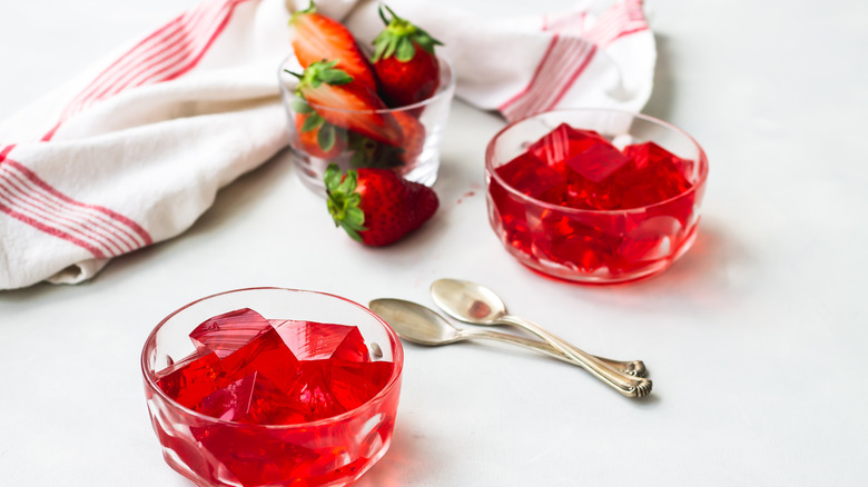 The soda needs to be fully carbonated for this, so don't use club soda that's been sitting around open for a while. Aim to serve the sparkling gelatin within 24 hours of making it — even the instructions for the commercial version warned that the carbonation could disappear after that time frame. Recipes vary, but they usually start with mixing boiling water with the gelatin and then adding club soda in place of cold water. You can even make a champagne version by heating the champagne with sugar, club soda, and gelatin before adding more cool champagne.