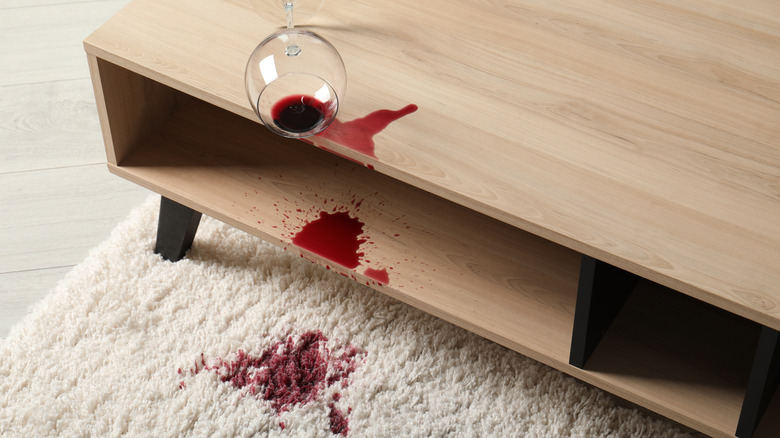 When carbon dioxide is added to water, such as when you make club soda, the two react to form carbonic acid. This type of acid is not acidic enough to hurt you when you drink carbonated beverages, but it is just acidic enough that many people claim it can dissolve the chemical bonds that stains form on surfaces. This makes it great for removing common stains like red wine spilled on carpets.