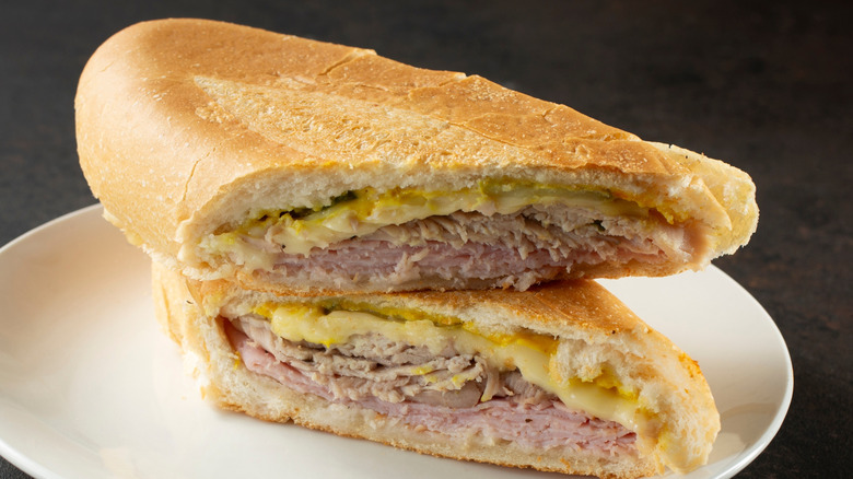 You can use just about any type of mustard (grainy brown mustard is a personal favorite) on a Cuban sandwich, but the key is to slather it all over the bread. Layering is also important so that you can get the bite from the mustard with every bite. Other essential ingredients include ham, roast pork, Swiss cheese, and pickles that run the entire length of the crusty Cuban-style bread. While you can make some tweaks, the overall flavor is just not the same if you swap out any other condiment.