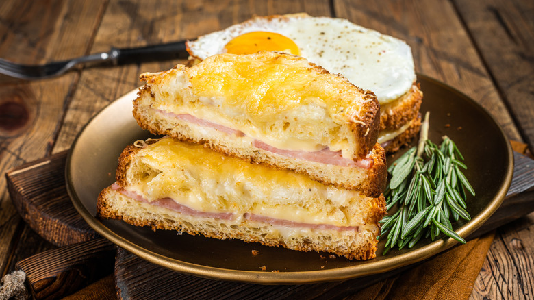 With ham, cheese, and egg, a croque madame is made extra delicious with a simple Dijon mustard spread. Ham and Gruyere is the classic choice for this sandwich, which is pretty simple and known as a low-key cafe dish. However, the addition of béchamel sauce over the top is what elevates a basic ham and cheese to something a little bit more unique and distinctly French. You'll need a stronger Dijon to cut through the other rich flavors so make sure that it has a pretty good kick.