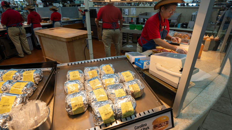 Other reviewers say that the beef brisket sandwiches, prepared by in-house pit masters, are "very satisfying" with good sauce. The chain's jerky counter features 14 flavors made in-house, from traditional peppered beef to more adventurous options using ghost pepper, with some being better than others. With other reviewers recommending burritos, tacos, and fried chicken sandwiches, it's clear that Southern and Tex-Mex food has a real cult following at Buc-ee's.