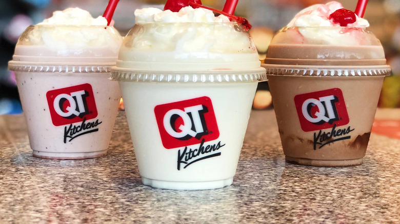 QT, as it's known to its fans, is one of the gas stations that serve craft coffee and even signature milkshakes, which are called QuickShakes. Fans come by regularly to try the seasonal releases, like the Caramel Apple Shake, Pumpkin Pie Shake, Candy Corn Shake, and Strawberry Kiwi Shake. The kitchen has a number of breakfast sandwiches, various sausage offerings, a walking taco and condiment station, and more coffee and tea options than you can consume in one go. And if you're a fan of the cheese pull, then its grilled cheeses are famous for it, with fans recommending the pulled pork, BLT, and chicken, bacon, and ranch options. "Have them run the grilled cheese through the toaster twice. The employee will probably look at you funny when you ask, but I swear it makes it significantly better," advised one reviewer.