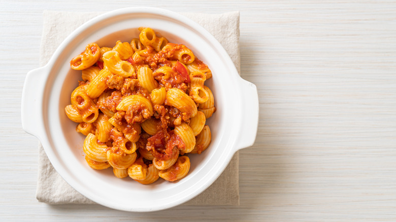 American chop suey is something I remember eating as a kid and seeing at potlucks. However, it's not just New Englanders who indulge in this pasta dish, which is made with ground beef, chopped vegetables (like onions and peppers), tomato sauce, Worcestershire sauce, and pasta. If you're thinking, "Wait, that sounds a lot like goulash!" you'd be right — they're the same thing, just going by different names.