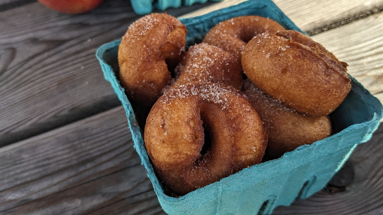 No trip to the apple orchard is complete without apple cider donuts — served piping hot and covered in cinnamon sugar. Although it may surprise you, apple cider donuts don't actually contain whole chunks of apples. The inclusion of apple cider gives the cakey donuts the perfect tang while keeping them moist and springy. Even if you don't like old-fashioned donuts, you may have a special place in your heart for them.