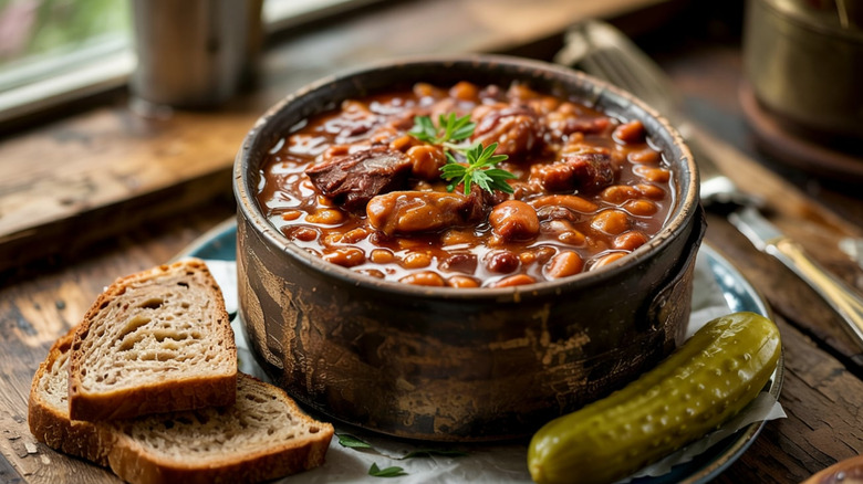 Cultures around the world enjoy beans. One of the most popular bean dishes in New England is undoubtedly Boston baked beans, which are often served alongside hot dogs and burgers at barbecues. This dish was first made in New England as early as the 1800s, where the beans were cooked for many hours in large pots with their signature sweet ingredient: molasses. However, the origin of the recipe traces back even earlier to when colonists first arrived on the Massachusetts shoreline. The Puritans replaced the bacon in a beans-and-bacon stew with salt pork, and relics have even been discovered of the original pots used to make this dish. Eventually, molasses was added to the recipe, seeing as the state was an important spot on 18th-century rum routes from the Caribbean.