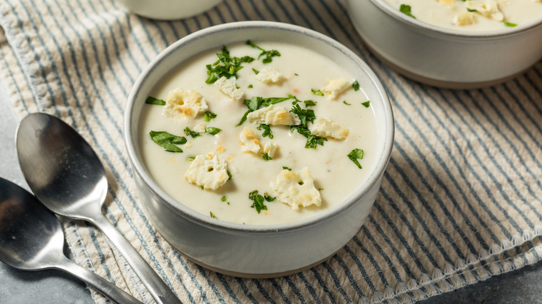 I would be remiss not to mention clam chowder on this list of the most memorable and easily recognizable New England foods. If there is one thing the region does well, it's seafood and dairy, and a classic New England clam chowder combines both into a steaming, salty, and indulgent soup. It's so good that people even eat it at clam shacks and seafood joints in the sweltering summer heat.
