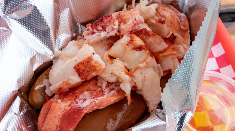 Lobster rolls are a big topic of contention in New England, and it usually comes down to whether you prefer them hot or cold. The former, served Connecticut-style, comes in a toasted, split-top bun that offers the perfect contrast to the juicy, sweet, butter-topped lobster inside. Maine-style cold rolls, on the other hand, are made with mayonnaise and may be spiced with things like tarragon and chives — though they are rarely adorned with lettuce and tomato like a chicken or tuna salad would be.