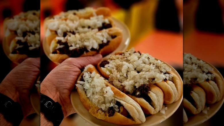 There are so many different regional styles of hot dogs, including the Rhode Island favorite: the New York System. It's one of the best sandwiches you can order in the state and comes packed with a wiener (not a hot dog, important distinction here) made with pork, veal, and beef, topped with mustard, chili, chopped white onion, and celery salt, and tucked into a steamed bun. The dish has ties to the Greek community and has been in the state for more than 100 years.