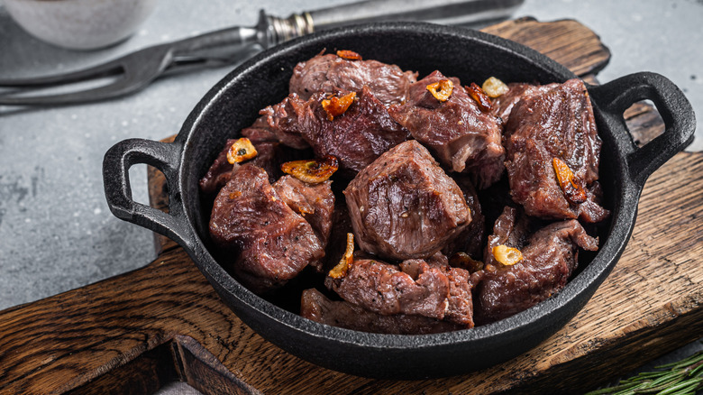 The origin of steak tips is contested, but it's more than likely a food born out of frugality and resourcefulness — as chefs wanted to make the most out of the cow. However, prominent names like New England chain favorite Ninety Nine take some ownership over the history of this iconic New England dish, alleging that its staff were the first ones to marinate the meat in Italian dressing.