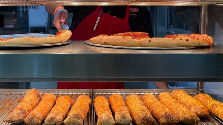 Ah, chicken bakes. While Costco's food court hot dogs and pizza are often the focal points of the wholesale club's hot food offerings, chicken bakes have their own fandom. And rightfully so — they're melty bastions of comfort food delight: long, crispy crusts stuffed full of cheese, chicken, bacon bits, and creamy Caesar dressing. Most people get their introduction via the famed Costco food courts, but there's a not-so-secret alternative lurking on the frozen aisle shelves. While a single hot chicken bake from the food court will run you $3.99, a single pack of six Kirkland brand frozen chicken bakes costs $13.59 (though prices may vary depending on your location), breaking down to $2.27 per item. But is that really a good deal? To decide that, you'll need to understand all the differences between food court chicken bakes and the frozen versions.