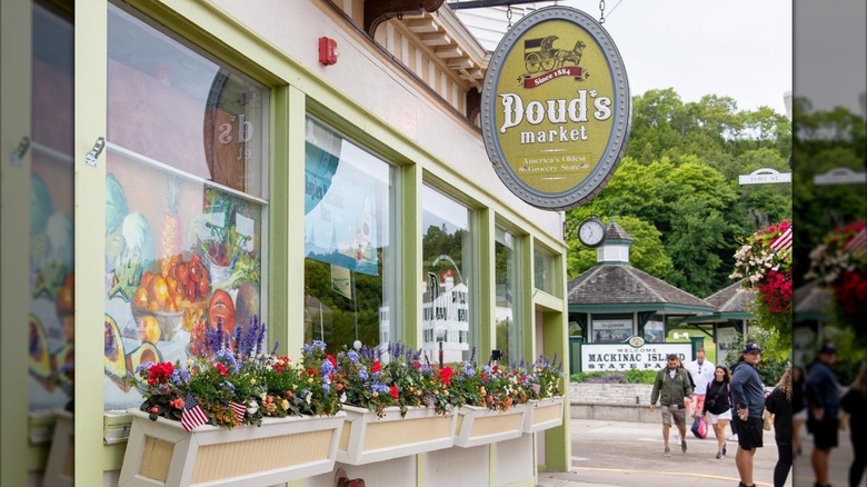 The oldest continually operating family grocery store in the United States is Doud's Market, located in Mackinac Island, Michigan. Doud's opened its doors in 1884 and was founded by brothers James and Patrick Doud. The grocer, at that time, was called Doud Bros. and sat on the water where the Mackinac Island Ferry Company currently is. In 1938, a fire forced the closure of the original store, but the Doud family reopened down the street, changing the name to Doud's Mercantile.