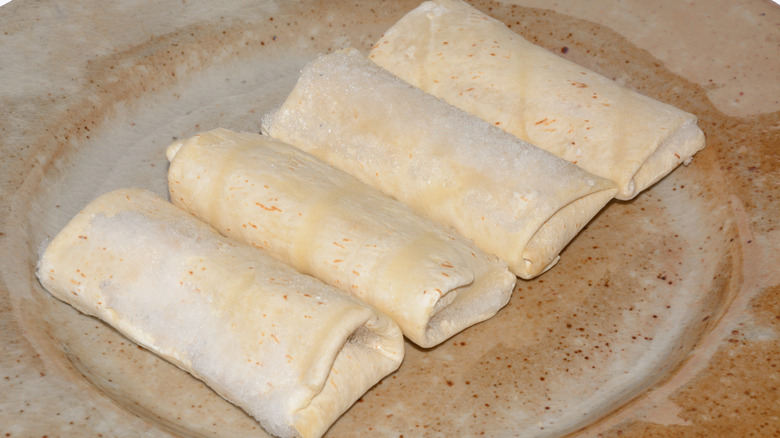 Of course, chowing down on a microwaved burrito every night isn't the most exciting way to wind down your day, which is why you should try throwing them into a glass baking dish with a handful of toppings to create a frozen burrito casserole. It's literally as simple as squeezing enough burritos inside your casserole dish to fill it, smothering them in some kind of sauce (enchilada sauce is particularly yummy), and baking them until everything is hot and bubbly. You don't even need to thaw the burritos first — just chuck 'em in there still frozen.