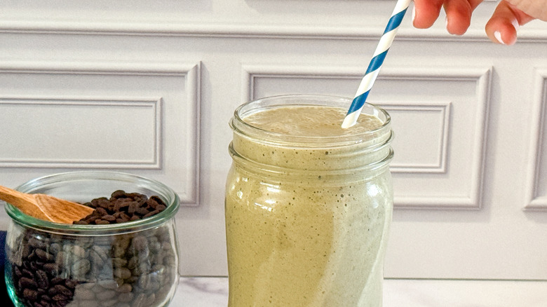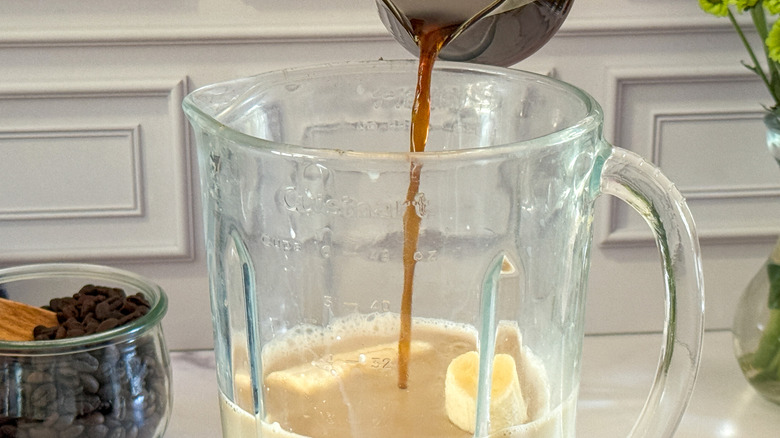 Wellness coach and recipe developer Miriam Hahn brings us this plant protein-packed coffee smoothie recipe and says, "I love using natural ingredients in all of my recipes, and the star in this smoothie is silken tofu. It adds plant-based protein, without adding any taste, unlike protein powders which can be chalky. It also blends beautifully and makes it extra creamy." She adds, "This smoothie is great for busy people who want to get more protein without spending money on protein powders."