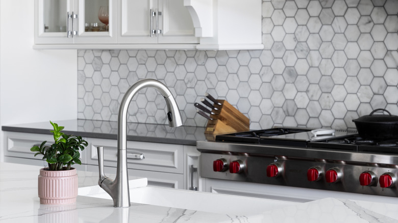 For our experts, functionality is key. Majewski says, "Pull-down faucets with a high arc and swivel spout offer maximum reach and clearance for filling tall pots." He adds, "Single-handle faucets simplify temperature control under pressure."