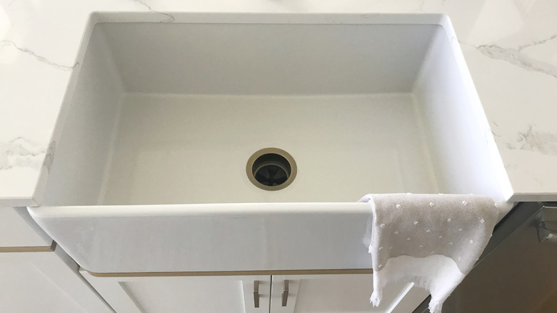 If you're browsing for kitchen sinks, you'll quickly discover the wide range of materials they come in. The most common among these are stainless steel, granite composite, fireclay, acrylic, and even plastic. For our experts, stainless steel is the best option in most cases. Ryan Majewski, senior operations officer at CWF Restoration, praises stainless steel's "toughness [...] and resistance to heat and stains." It's also among the most affordable kitchen sink options. That said, stainless steel can show water spots and scratches. Atkinson shares, "I recommend drying the sink every time after use in order to prevent water spots and mineral deposits — especially if there is hard water. A bottom grid can also be helpful in preventing dents or scratches caused by heavy pots or pans."