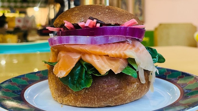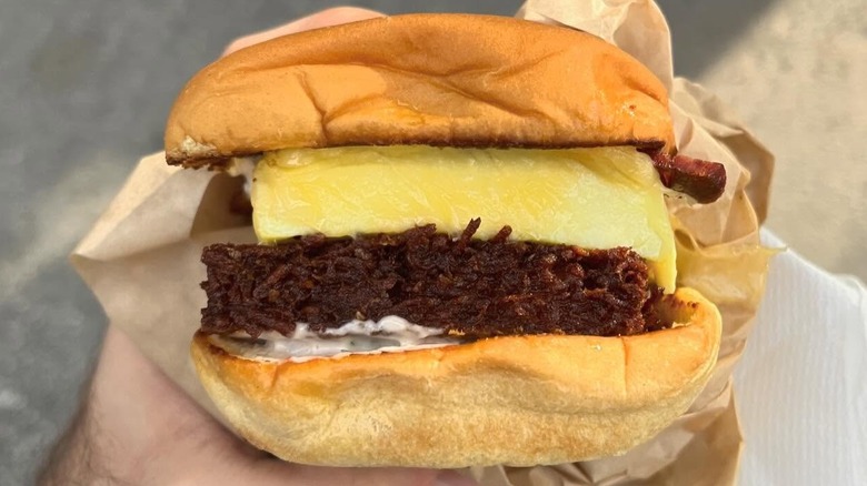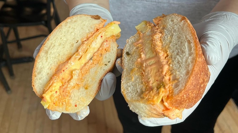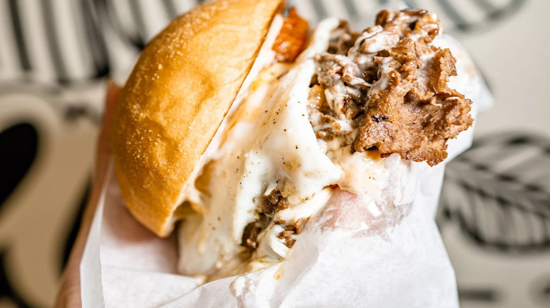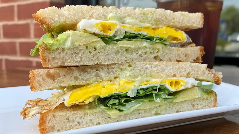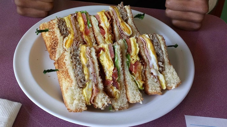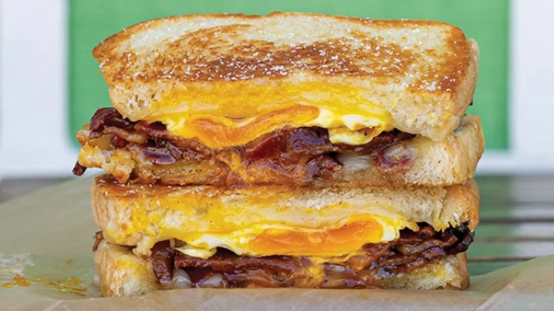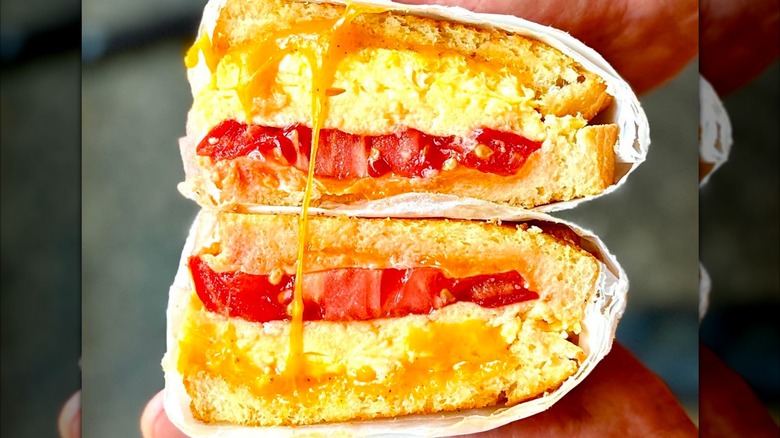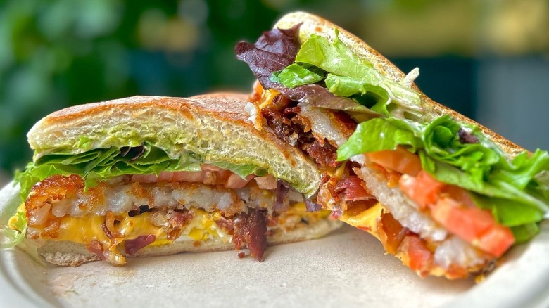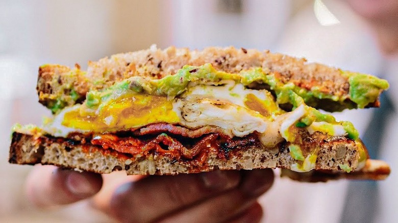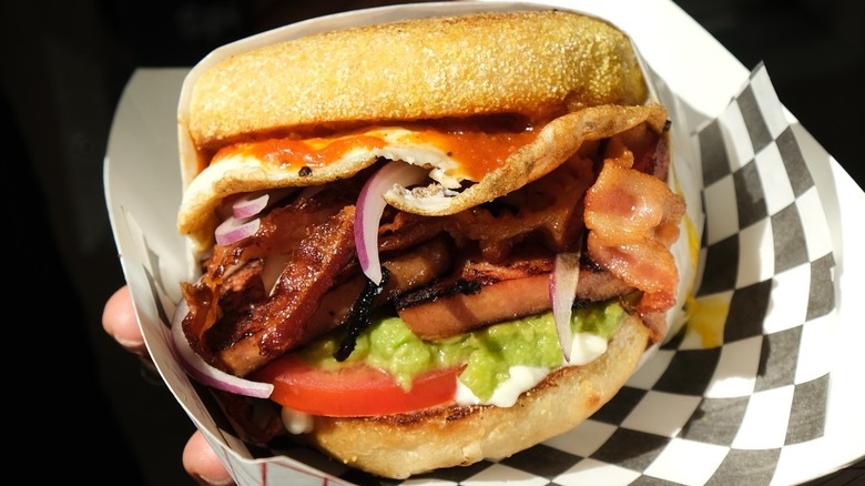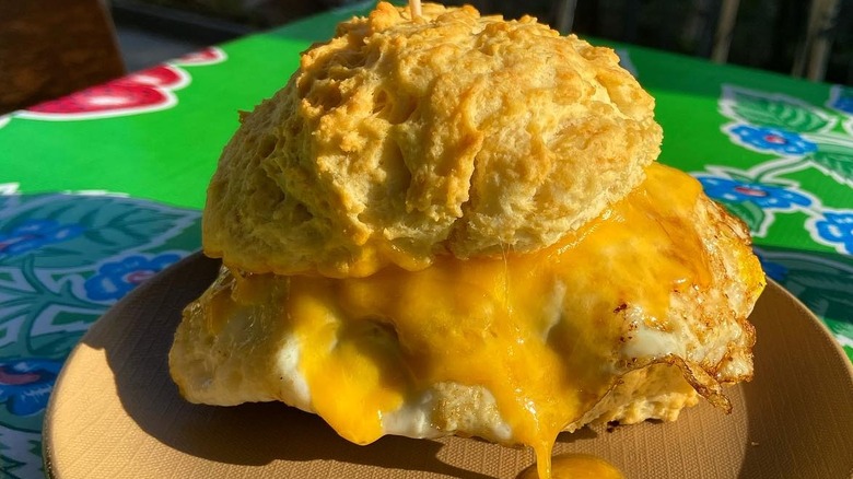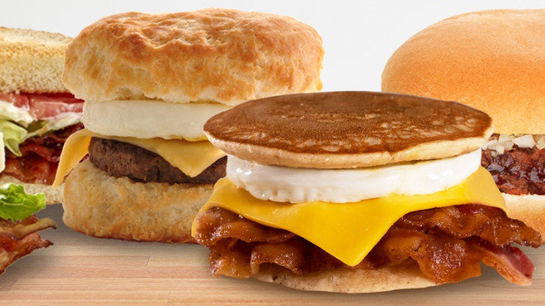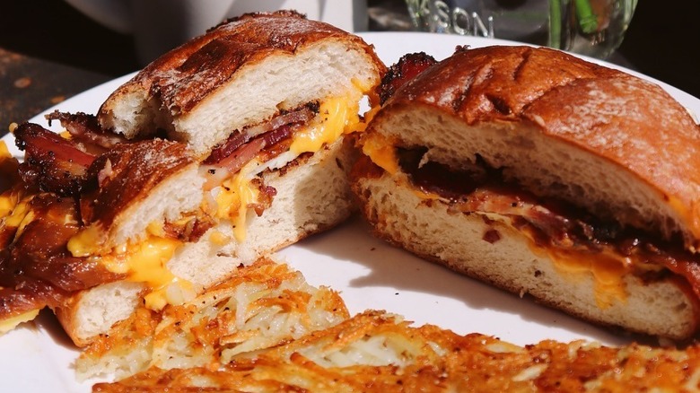 Is there anything better than a super-stacked breakfast sandwich to start the day? You get all your essentials in one hand-held meal like fluffy bread, soft eggs, and maybe some meat and cheese. Perhaps you prefer luscious lox or smoked salmon on a chewy bagel with a crackly crust, or crispy chicken and a runny egg sandwiched between buttery biscuits. That's the great thing about breakfast sandwiches — they're incredibly versatile. However, some rise above the rest, of course.