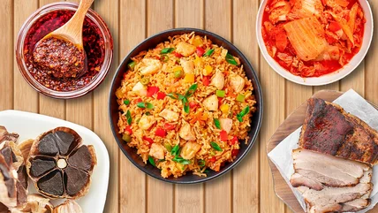 Kimchi is a type of fermented vegetable made in Korea for thousands of years. These days, it's most often made with napa cabbage or radishes, both of which you can easily make at home or buy from most grocery stores. It's sometimes tart from fermentation and, more often than not, loaded with spice from Korean chili flake. Typically used in Korean-style fried rice, kimchi brings enough flavor to be the star ingredient in vegetarian fried rice but is also versatile enough to be used in combination with other ingredients.