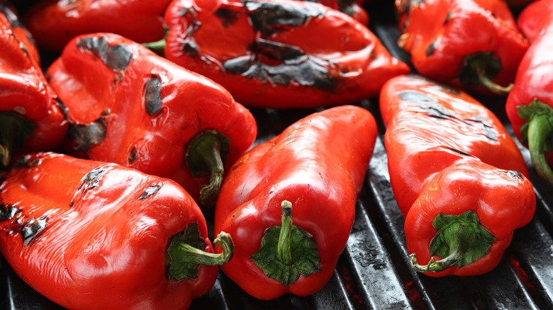 If you don't have a gas range stove like Alex Guarnaschelli, don't worry, as there are several other ways to get the perfect char on your peppers. Of course, you can't place them directly onto an electric stove range. That would most certainly cause them to burn and smoke and can even be a fire hazard. Instead, grab a high heat-safe wire rack and place it over your stovetop so that it is not touching any active burners, but instead sits above them. Place you peppers on the rack and cook until charred.