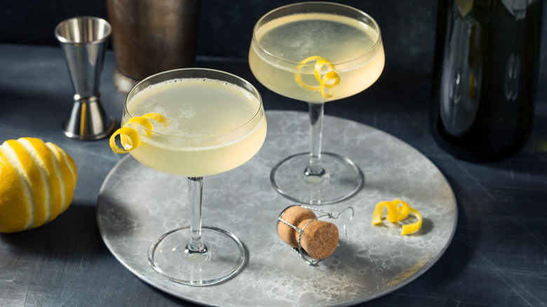 Essentially, the French 75 is a shaken number, with the bubbly swooping in at the end to lift the remaining ingredients together. With a brain-freezing frosty equivalent, there's no need to split this task into sections. Simply grab your ice cubes and measure out the booze and syrups, blitzing at full speed until the mixture is icy. Normally, you'd pour this drink into a fluted champagne vessel, but a wider cup is preferred to hold all that glorious slushy inside. Don't forget the lemon rind!