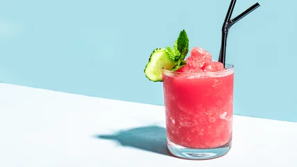 Knowing the type of cocktails we've encountered so far, these elements are the ticket to cooling off — and would have no problem being mashed in your blender if you wish. To cream everything into a tart slurry (even the mint leaves), turn your blender setting up to high with the allotted amount of ice cubes. Machine blenders are efficient tools, and they can crush whole ingredients in a cinch without requiring piece-meal prep. As infinitely sippable as the drink can be, turning one into an adult Slurpee draws out the effervescent, cooling sensations and really calms the palate.