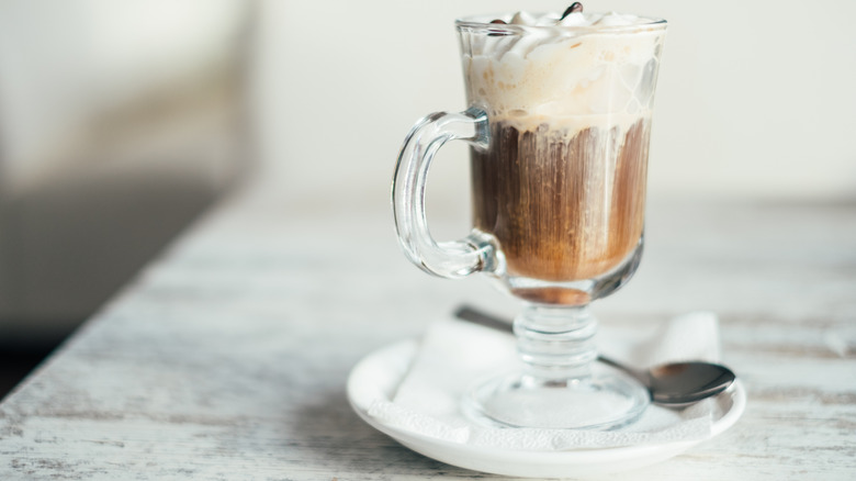 Frozen slushees are fun to knock back on sweltering afternoons, though with how often they gravitate towards sugary fruit flavors, many might find them a bit old-hat. Irish coffee, according to Alejandro Ibanez, would be an intriguing cocktail to spin into beach-ready smoothies — and when done right, can be as quenching as any umbrella beverage. "Lately we've seen other flavors, like wine and coffee, coming in strong to play an important role in the taunted 'overly sweet frozen drink' category," Ibanez added. Essentially, it's black coffee spiked with whiskey, followed by a pinch of sugar and whipped cream fluffed on top. Other recipes can call for a coffee-infused liqueur.