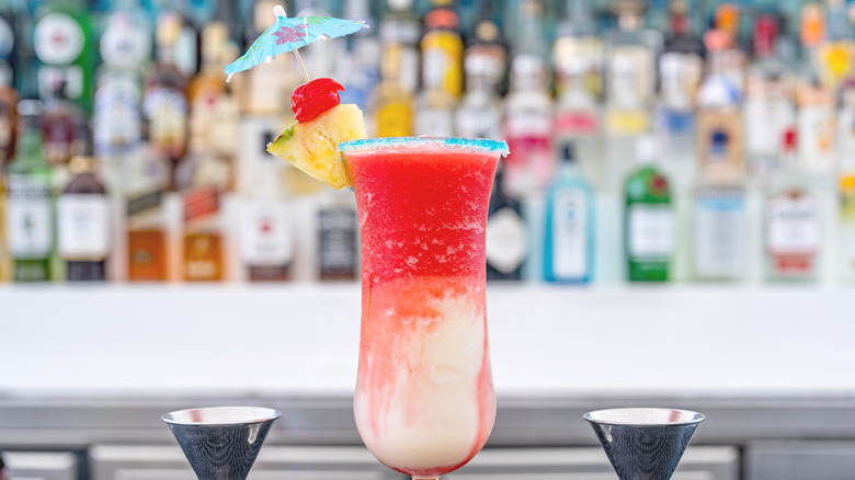 Not only does it burst with high-octane sweetness from both sides of the glass, but the drink is also a spectacle to behold. Textbook examples tout frosty red-and-white ribbons separating the mixtures, providing a show-stopping effect on top of ample refreshment. Like any frozen drink, keep your eye on the measurements. "If you've ever had a runny frozen cocktail served to you, it's likely because the maker did not factor in the sugar-to-water ratio properly," explained Gedeon Tsegaye from The Cosmopolitan in Las Vegas. If you want to go all in, you could invest in a tool like the Brix Refractometer to banish melty glasses for good.