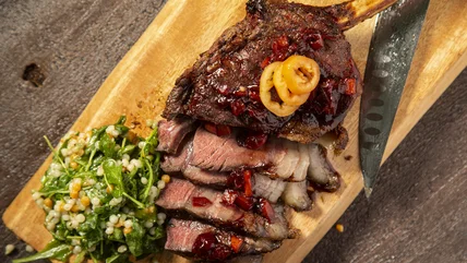 You can cook compelling bison dishes using select cuts, such as the backstrap, tenderloin, and ribeye. When cooking ribeye, Andrew Zimmern suggests first rubbing the meat with an herb and mustard mix, then quickly charring it on the grill, keeping the inside raw. "Then marinate the charred ribeye in red wine, olive oil, rosemary, lemon, and soy sauce for several hours and then toss back on the grill," he says. By charring each side of the ribeye steak for two minutes, as he does when grilling Tomahawk bison chops on his Outdoor Channel show "Wild Game Kitchen," the exterior more easily soaks up the marinade. Choosing the right thickness of your steak will also help you create a wonderful-tasting dish, as will employing the right technique when searing your steak, such as letting the meat rest for 20 to 30 minutes after it comes out of the fridge.