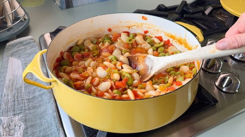 If you just don't have time to cook the beans, use an equal amount of canned butter beans. Kinnaird says it is important to rinse the beans before adding them to the dish to remove extra salt from the packaging and perhaps avoid some intestinal distress. Also, if you prefer a less spicy condiment to the Calabrian chilies, use something with heat, such as mild peppadew or sweetie drop peppers.