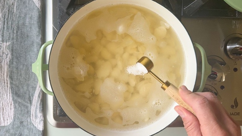- Add 1 teaspoon of salt to the beans and cook for an additional 15 minutes or until soft.