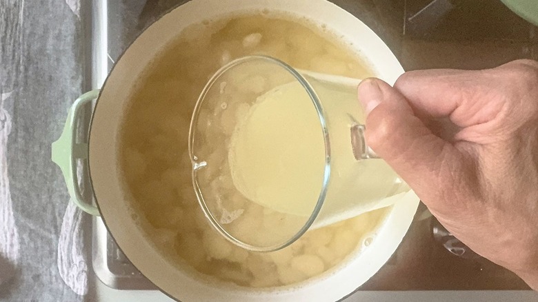 Remove 1 cup of the bean cooking liquid from the pot and set aside.