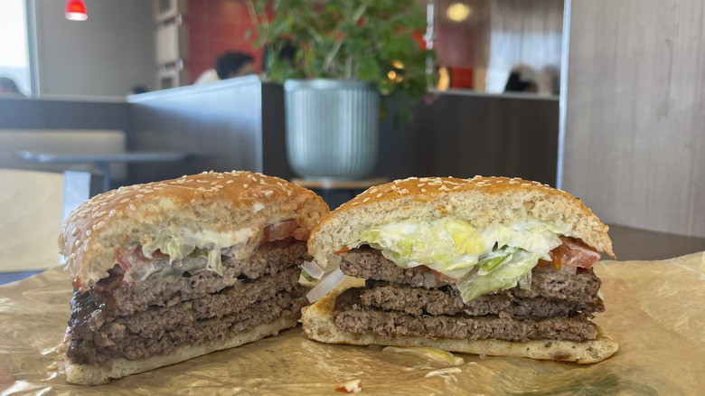 Burger King was a relatively late bloomer in the fast-food world, opening years after the big names like Sonic, McDonald's, Whataburger, and Dairy Queen. Still, the chain has held its own and made a big name for itself by having a reputation for hearty-sized burgers with supremely fresh toppings.