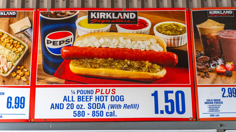 A year after the first Costco opened in 1983 in Seattle, a San Diego Costco began selling hot dogs out of a cart placed in front of the store. While Costco's food court has been selling its own Kirkland Signature all-beef hot dogs since 2008, back then, they were selling Hebrew National's 100% kosher beef franks. This was the start of what eventually became Cafe 150 in the 1990s — the warehouse's first version of its food court, selling $1.50 hot dogs, pizza, and other items. The expansion of Cafe 150 from a hot dog stand to a food court coincided with Costco's 1993 merger with Price Club, a pioneer of the members-only warehouse concept.