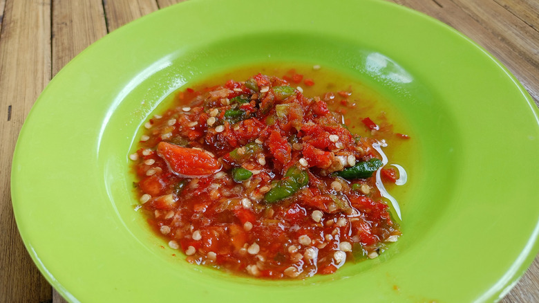 Every cuisine around the world seems to have its own version of a spicy, bright condiment with a kick. Harissa, salsa, sriracha, gochujang, and the beloved chili crisp are just a few of the best-known. One you might not have stored in the pantry at the moment is sambal oelek. This Indonesian sauce is a pantry staple for Sunny Anderson, a Food Network star and host of shows such as "Home Made in America" and "Cooking for Real."