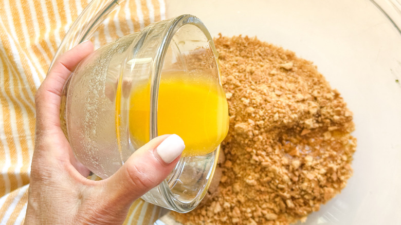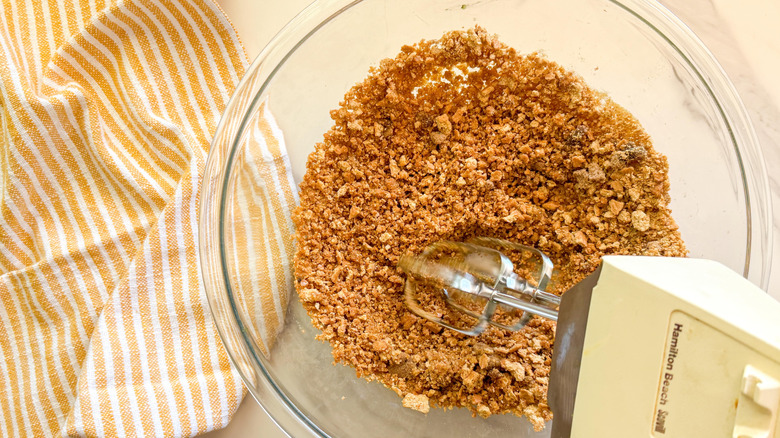 - In a medium bowl, combine the graham cracker crumbs, brown sugar, and melted butter.