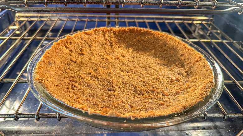 Dolly Parton is known for her fabulously sweet and simple recipes, which require little effort but deliver big on flavor. Dolly's take on a peanut butter pie, which is making the rounds at the moment, is one such recipe. Though her version only calls for 5 ingredients, we've added a couple more to augment the pie with a sweet and buttery homemade graham cracker crust that just can't be beaten by one pulled from a grocery store shelf. The simple ingredients take on a sweet caramel flavor with a toasted texture, and are transformed into a mouthwatering base for the rich and silky salty-sweet filling. The resulting pie is a creamy, dreamy slice of heaven.