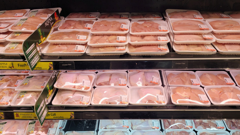 Zimmern also recommends looking closely at the package to learn more about where the chicken came from. Look for labels that say "pasture-raised" or "regeneratively raised." These terms go beyond the requirements for free-range and can increase the likelihood that you'll get a high-quality product you can feel good about. Another smart move: Buy your chicken from a butcher or, at the very least, from a grocery store that has a butcher (this means avoiding buying chicken at Aldi). Ask questions like what the chicken ate, whether it was pastured or confined, and how old it was at slaughter (older chickens tend to have better flavor). The more the butcher can tell you about the chicken, the more likely that it's a high-quality product.
