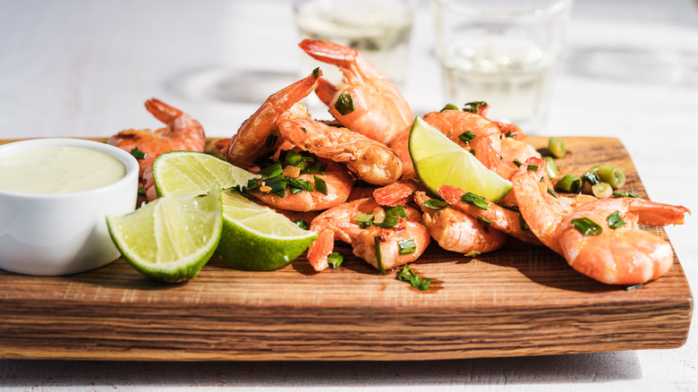While pink and white shrimp varieties have a balanced sweetness to them, their textures are different because white shrimp have a much firmer bite. Pink shrimp are softer and not as springy, making them great for raw recipes that conserve their structural integrity. White shrimp have thin shells and meaty flesh. You'll see them turn from pale gray-white to coral as the heat denatures their pigments when cooked. They are ideal for quick sautéing and pair well with creamy pastas. Just remember that frozen shrimp does not belong on the grill ... that might lead to a mushy mess. White shrimp are in peak season in late summer or fall, so you might want to get them fresh instead of frozen at this time. Also be aware the "fresh shrimp" in the grocery store isn't always fresh.