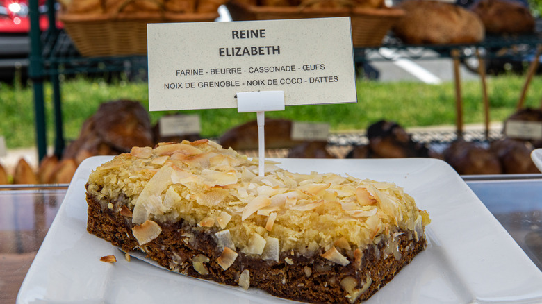 Theories about Queen Elizabeth's favorite cake abound, from a dark ganache chocolate cake to an ice cream bombe cake with coffee flavor. But one thing was never mentioned: A cake with a chocolate biscuit layer that is covered in coconut and dates. Somehow, that's the cake that bears the late Queen's name in Canada.