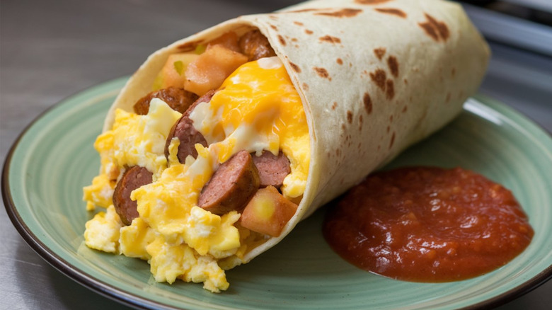 In 1976, Dee's Restaurant began serving up breakfast burritos one day after realizing that the ingredients of its breakfast sandwich — eggs, ham, and cheese — would be just as delicious and more easily consumed in a tortilla. One of Dee's Restaurant's customers asked to add in some potatoes, so with the addition of hash browns, the hand-held breakfast made its debut. But a year earlier and just a little further down the road, eatery Tia Sophia's started serving up something similar, but instead of dishing out burritos as finger food, the restaurant offered a smothered version. Though fifty years later, the debate still rages on, one thing is for certain — you can thank the Land of Enchantment for that delicious breakfast staple.