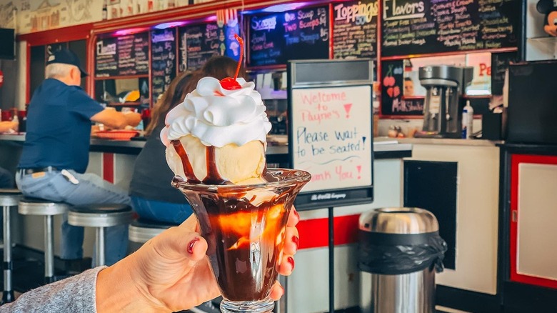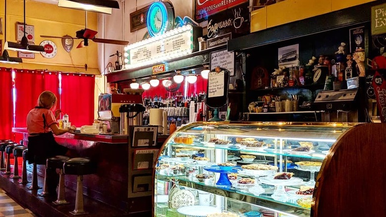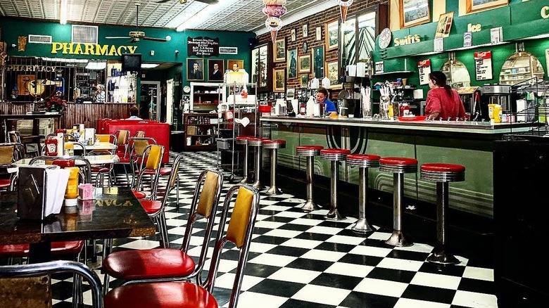 While the pharmacy is no longer in operation, the soda fountain is still going strong. It's styled like a classic 1950s diner replete with red and white vinyl booths, vintage Coca-Cola signs, and a jukebox. It's famous for its red slaw dog, which is a hot dog topped with ketchup-based coleslaw. You can also order salads and sandwiches like the Dagwood, which is stacked with layers of roast beef, ham, turkey, bacon, Swiss cheese, American cheese, lettuce, tomato, mayo, and pickles in sourdough bread. And, of course, sweet treats like ice cream sundaes and milkshakes are also on offer.