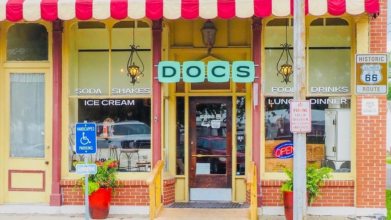Docs Just Off 66 may sound like it's firmly planted in the modern era, but its history spans over a century. It originally opened as Deck's Drug Store in 1884 and sold hand-rolled pills and tonics along with groceries and hardware. In 1929, the Deck family added a soda fountain and started selling ice cream and sodas. It remained in the Deck family up until 2001, and has changed hands a few times since then. The current owners renamed and renovated the spot, but kept the antique marble countertop, back bar, and stools.