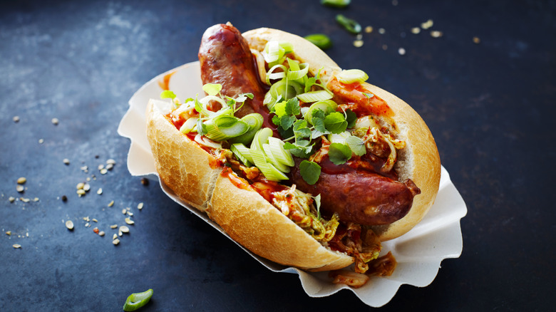 When you know how to use a Crock-Pot like a pro, you quickly realize they're endlessly versatile. If you have one of these handy appliances in your cupboard, it's the perfect way to keep cooked hot dogs warm for hours. Once you've grilled all your hot dogs, simply pile them into your slow cooker and make sure it's on the warm setting. There is no need to add any water to the slow cookers since the hot dogs release a good amount of steam, enough to prevent them from drying out. Most slow cookers offer enough room to hold plenty with the lid on, whether you lay them on their sides or keep them upright. You can also keep the buns warm using this method if you have enough room (or happen to have more than one slow cooker). Alternatively, you might wrap them in foil, either individually or all together with one big piece.