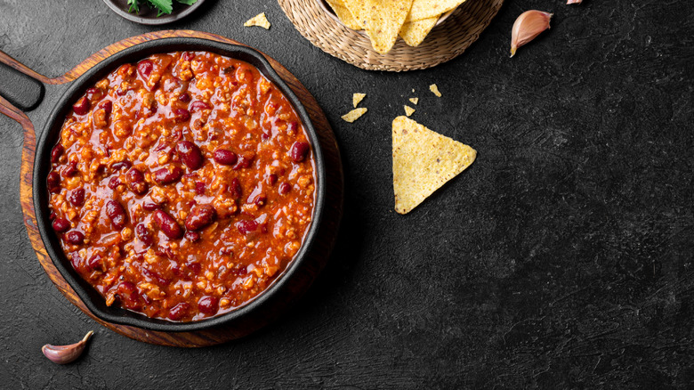 Chili con carne, which translates directly to "chili with meat", is often simply called "chili" in the U.S. This hearty Southwestern staple originated in Texas but has spread across the country, and for good reason. A spicy, comforting stew, chili con carne typically combines beef, tomatoes, beans, chile peppers, and a bold blend of spices.