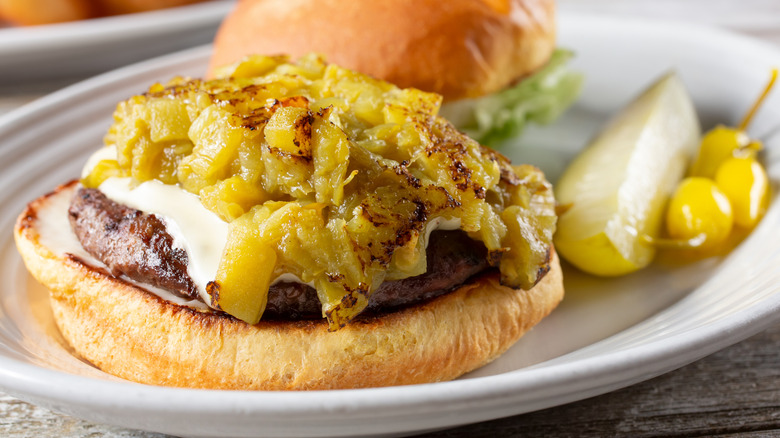 The burger's origins trace back to Hatch, New Mexico, just 70 miles north of the Mexican border. Often referred to as the "chile capital of the world," Hatch is famous for its namesake peppers, which owe their distinct flavor to the region's unique soil and climate. Earthy and incredibly versatile, Hatch green chiles are a point of pride across the Southwest, and this burger is one of the most delicious ways they're used.