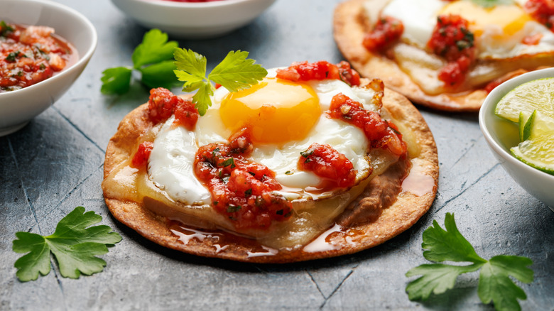 Huevos rancheros is a traditional Mexican breakfast and translates from Spanish to "ranch-style eggs." A fan favorite, some locals might even argue that huevos rancheros is the quintessential Southwestern breakfast. Not to be confused with chilaquiles, this hearty yet simple dish begins with two corn tortillas, sometimes fried into a crispy tostada, and is then layered with refried beans, fried eggs, and topped with salsa roja, crumbled cotija cheese, and the occasional garnish of avocado or cilantro.