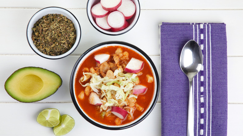 One of the most common soups many people grow up eating in the Southwest is pozole. This traditional Mexican stew is made with hominy, meat, pork or chicken, and a deeply flavorful chili-based broth. While delicious on its own, one of the best parts of pozole is the variety of fresh toppings you can add to customize your bowl: crunchy cabbage, sliced radishes, lime wedges, avocado, and crispy tostadas are all fair game.