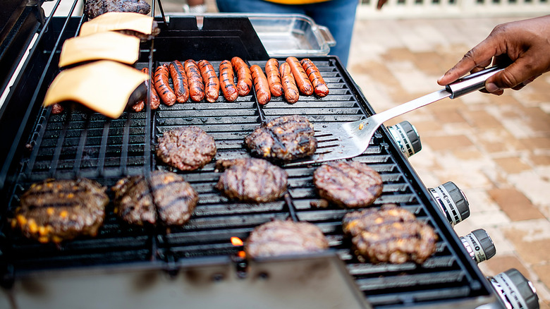 If you have to cook on hot days, it's best to do so outside so you won't have to worry about trapping any of that heat inside and heating up your kitchen. For many, that means breaking out the hot dogs and firing up the grill. While barbecue favorites like dogs, burgers, and brats are all tasty, your grill can cook more than just these classic proteins. You can grill fruits for extra flavorful salads, desserts, and snacks, including watermelon, peaches, and pineapple. If you have a flat-top grill, like a Blackstone, you may want to try cooking a juicy steak on it or taking your pancake breakfast outside. As such, we'd recommend performing all regular grill upkeep, most notably cleaning your grill, before the heat wave hits. After all, no one wants to be painstakingly chiseling stuck-on food off in 100-degree weather.