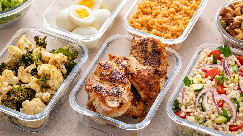 Not all foods keep well, so you'll want to select foods that will have the same tasty flavor on day three as they have on day one. When prepping ahead, you should also consider how you can prepare your food several different ways to avoid getting bored with it. Take shredded chicken, for example. You can cook up chicken, shred it in your KitchenAid, and store it until you want to use it. Squirt a little Buffalo sauce on it and tuck it into a wrap with some lettuce and ranch for a tasty lunch, or season it with your favorite Tex-Mex spices for a tasty and easy taco night. You can also buy and cook pasta in bulk to use for hot dishes and pasta salads, or roast some veggies on a cool day and sprinkle them throughout your meals.