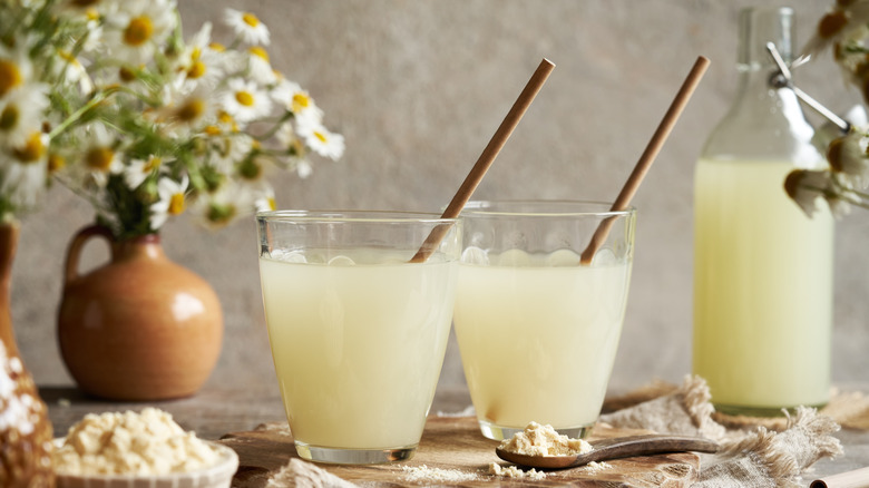 Whey's lightly sour, yogurt-like flavor doesn't linger; it won't coat your mouth since most of the fat and cream is removed as curds. It simply adds complexity and creaminess to the cocktail's flavor. A whey punch, made with scotch, tea, and sweetened whey syrup, is the perfect example of a sophisticated whey cocktail. Another is the whey martini, in which the delicate milk byproduct works to dilute and soften the alcohol-forward drink while also adding a luxurious texture.