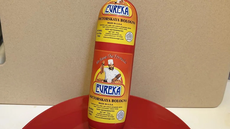 Chowhound has found that not all bolognas are created equal, and there's one store-bought bologna you should keep out of your shopping cart. In our ranking of seven bologna brands you can find at the grocery store, Eureka Doctorskaya Bologna came in last place by a long shot. First off, our reviewer found the packaging a little too much to handle. Eureka Doctorskaya comes unsliced, as a whole tube. The version we bought was 14-ounces (nearly a pound of processed meat), so it's understandable that it seemed a little intimidating. Although the size of a drainage pipe, bologna really is just a bigger hot dog, so purchased as an entire log may be unappetizing to those of us who normally buy our bologna in sandwich-ready slices.